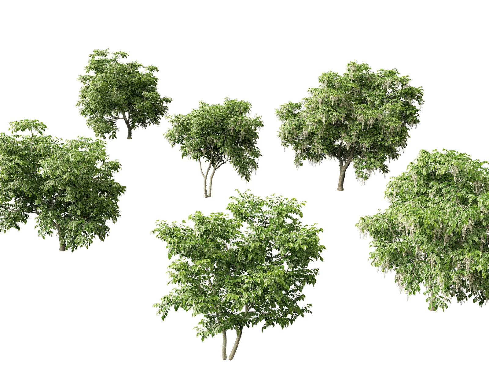 A high-poly 3D model of the Cladrastis kentukea, commonly known as the American yellowwood. This asset is specifically designed for architectural visualization and environmental scenes. It includes fully configured materials, applied textures, and generated UVW mapping. The geometry spans between 100,000 and 1.5 million polygons.