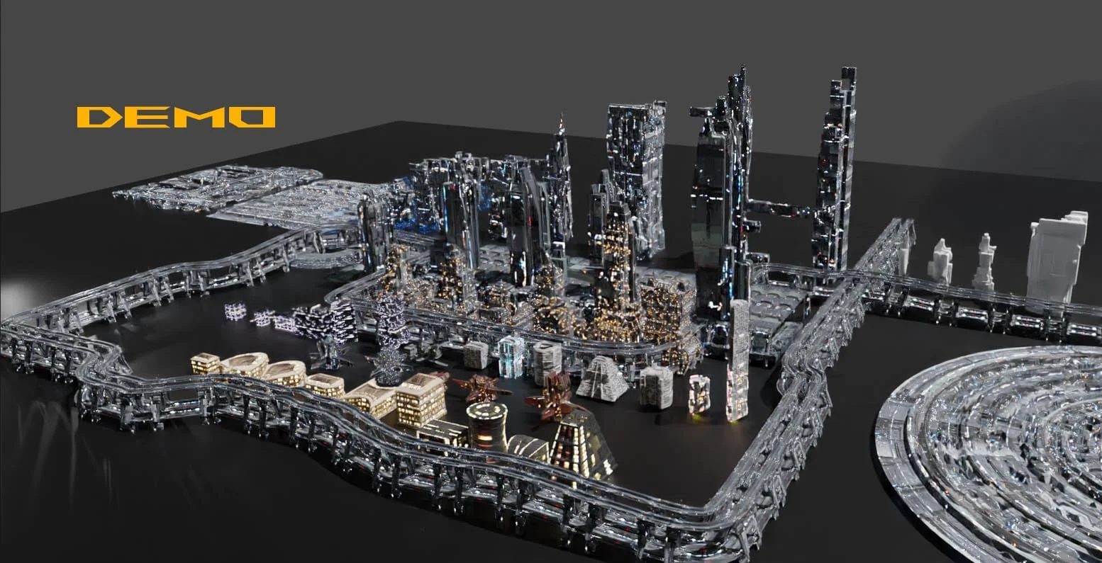 This asset collection provides 3D models and textures for constructing futuristic, clean sci-fi cityscapes. The kit includes architectural components such as base plates, highways, various building types, and modular base forms for generating structures.