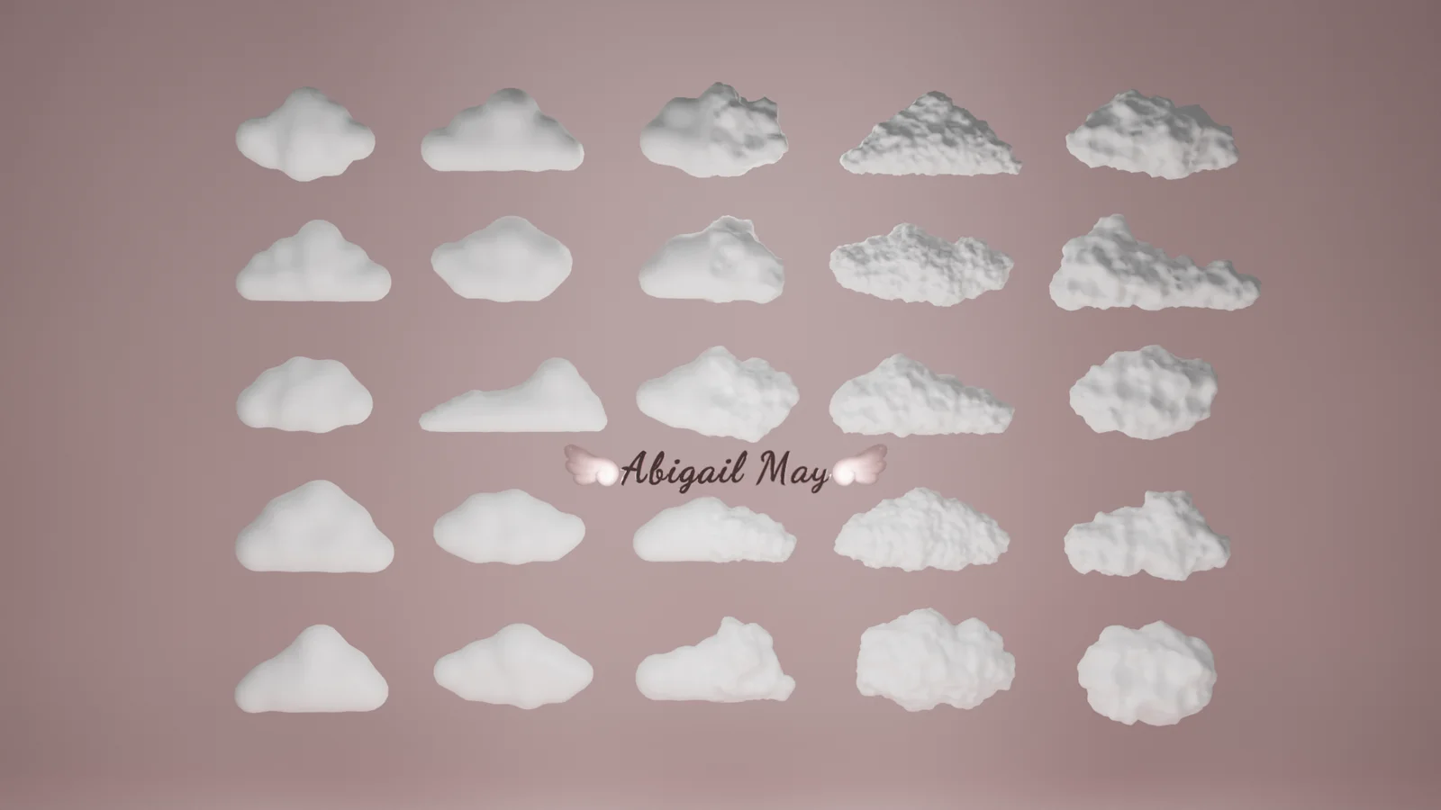 This collection provides 25 stylized cloud models, each available in both low-poly and high-poly variations. Every cloud uses a single material slot for simplified texturing and management. The low-poly variations range from approximately 600 to 6,700 triangles, while the high-poly versions span from 2,600 to 29,800 triangles.
