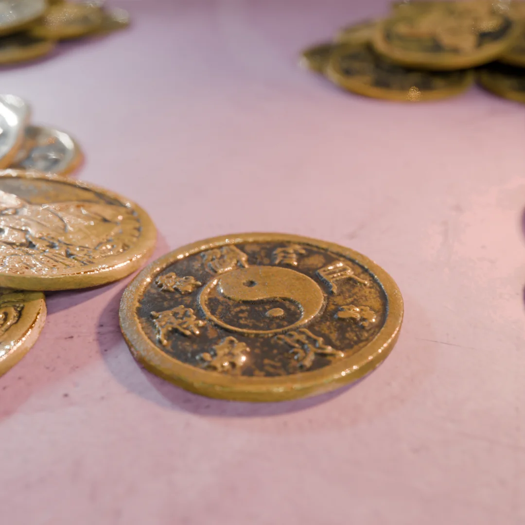 A pre-configured animation rig built specifically for generating spinning and rolling coin movements. The setup provides the underlying mechanical controls for the animation, but does not include a 3D coin mesh, allowing users to parent or attach their own custom coin models.