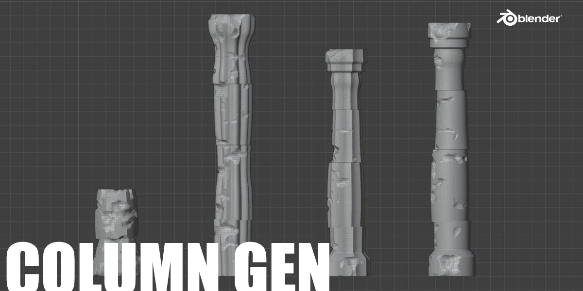 Column Gen is a procedural generation tool for creating architectural columns in Blender. Built on a geometry nodes framework, it allows users to define the silhouette of their columns using float curve controls, enabling precise shaping of the pillar profile. The system includes multiple preset profiles, such as simple and star-shaped curves, to introduce varied structural details to the mesh.