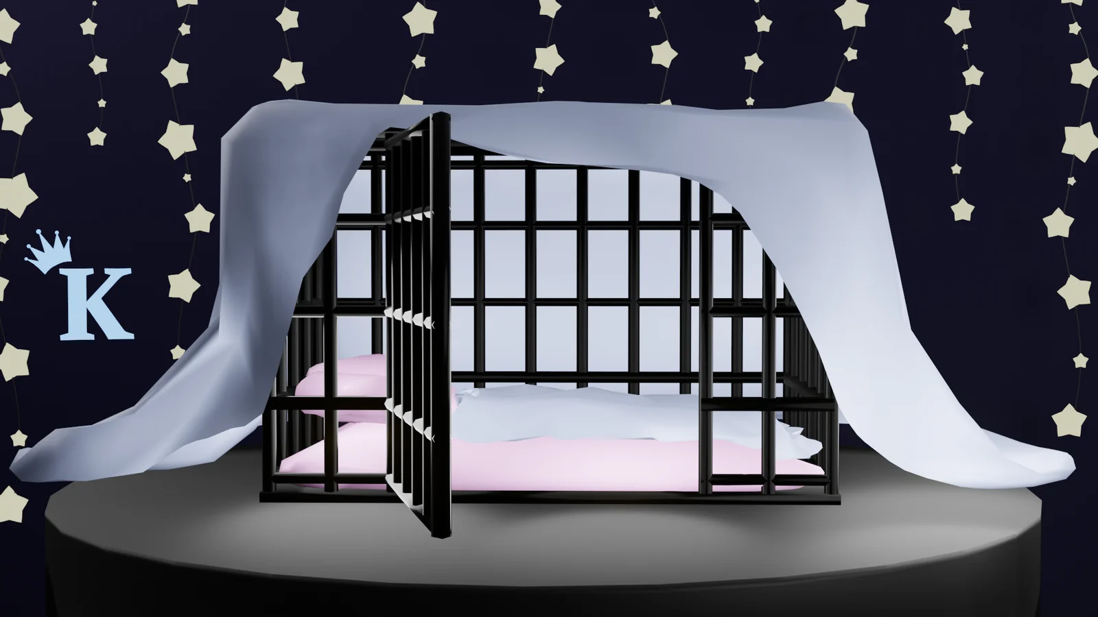 A 3D model of a cage featuring an integrated blendshape for opening and closing its door. The asset is provided in FBX format and consists of 4,366 polygons organized across three material slots. Textures, weight painting, and rigging are not included with this mesh.