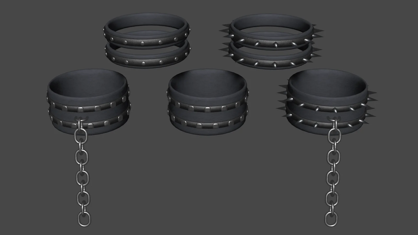 The Complete Choker Package is a collection of 5 different 3D choker models. Each model is fully rigged for placement on the neck, with the ability to adjust weight painting for other uses, such as wristbands. The package includes the native Blender file and texture maps for diffuse, normal, metallic, and roughness channels. Each choker utilizes between 3 and 4 materials.