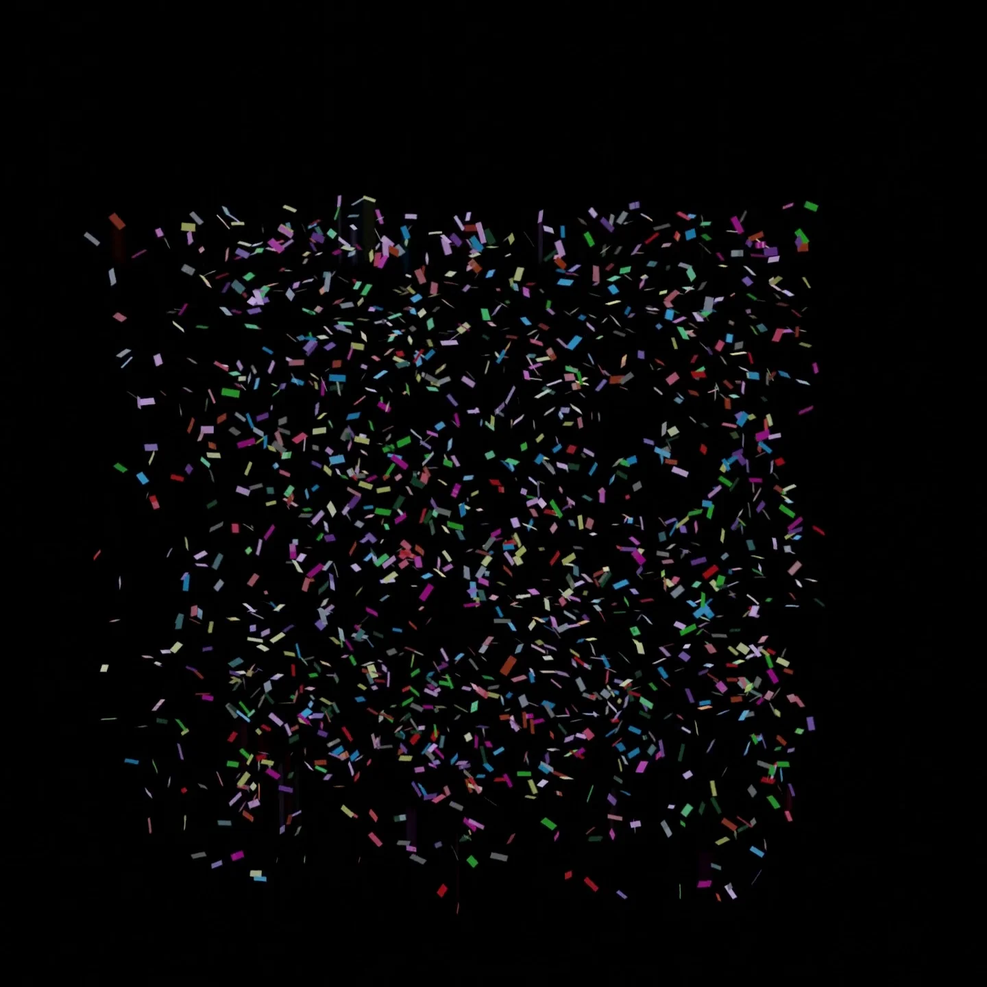 This collection contains 10 simulated 3D confetti animations featuring both rectangular and circular particle shapes. The set includes two perfectly looping falling animations, while the remaining eight depict confetti shooting upwards before settling on the ground. Each animation spans 150 frames and comes with multiple texture options, including colorful, golden, and single-color variations.