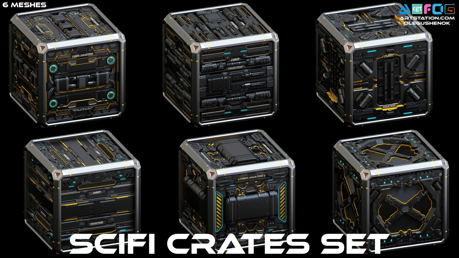 This asset pack contains a collection of six distinct crate 3D models. The models are provided in the OBJ file format, making them compatible with Blender and a wide variety of other 3D software for use in scene set dressing and prop placement.