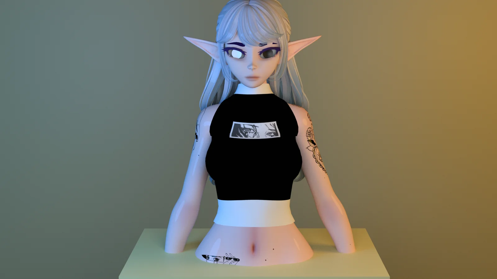 A 3D model of a crop top turtleneck, provided in FBX format. The mesh consists of 4,000 triangles and comes pre-weighted and rigged to fit Pandaa's Female base. The package includes one base texture alongside eight edited texture variations.