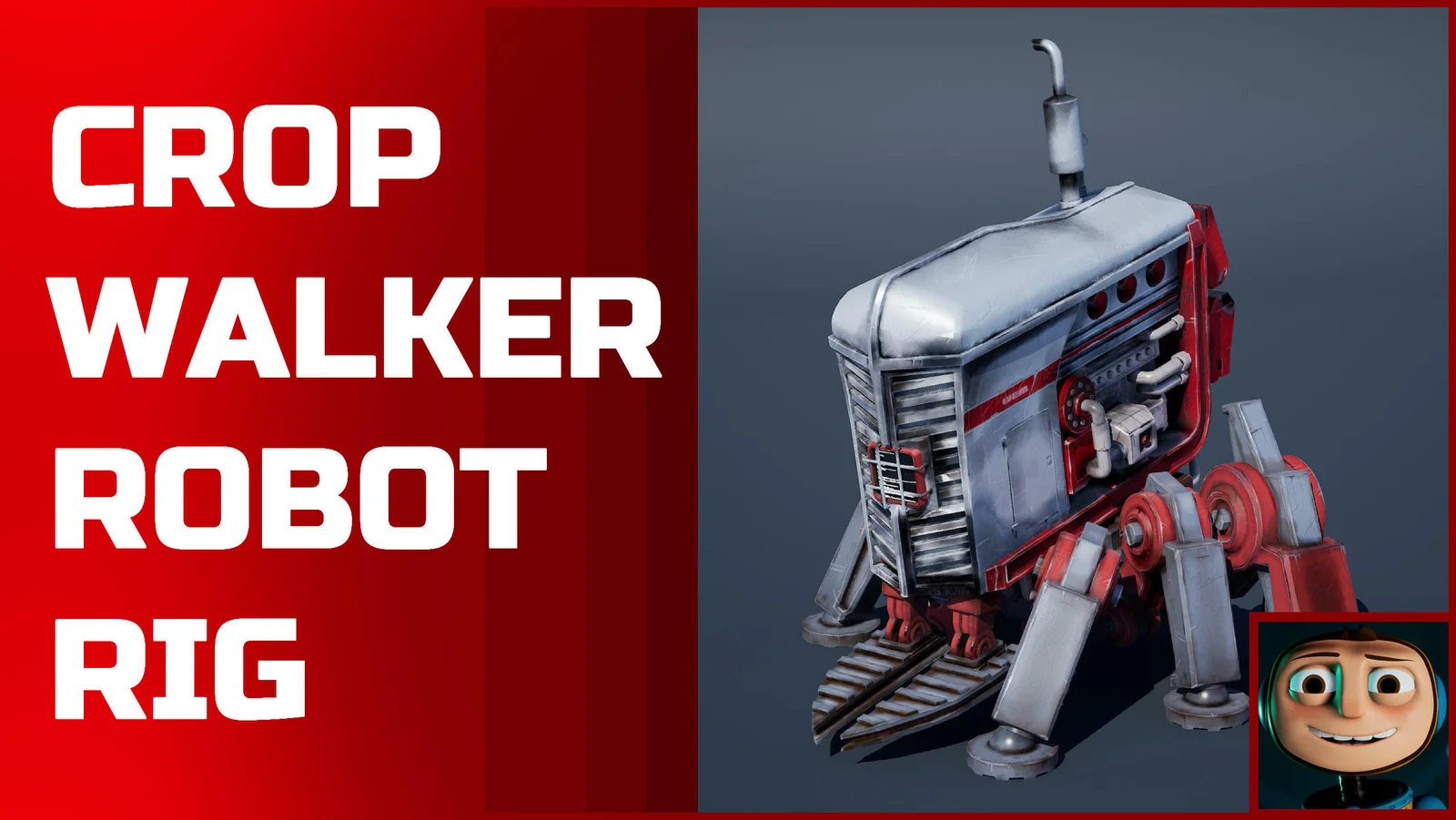 A six-legged agricultural robot model designed for rendering and animation. The asset includes both hand-painted flat shading textures and a standard PBR texture set featuring normal, roughness, and metallic maps. While the native animation rig was constructed in Maya 2020, an FBX export is included to allow importing the mesh and underlying skeleton into Blender or other 3D applications.