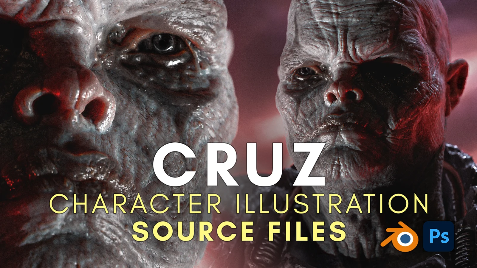 This product provides the original source files for the character illustration "Cruz." The included scene features a fully colored and textured high-polygon character model consisting of approximately seven million faces. The package contains a .blend file for 3D examination and study, alongside a .psd file. Due to the dense geometry, a mid-range processor and graphics card are recommended for optimal performance.