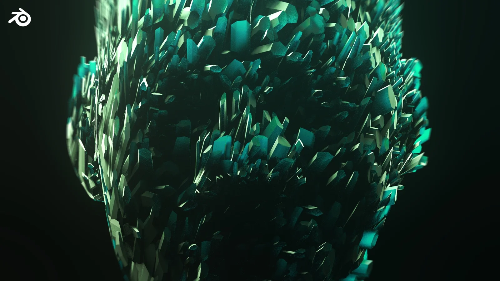 A Blender project file containing a crystal scene generated using Geometry Nodes. The setup provides a working example of procedural crystal structures that users can analyze, modify, or render directly within Blender.