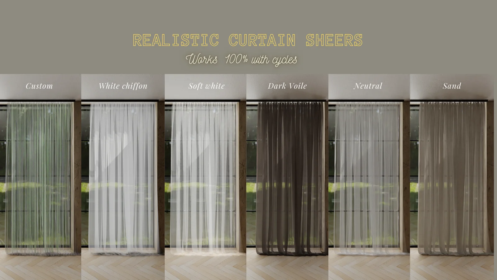 This bundle provides a selection of curtain assets, including three distinct models and a variety of shaders designed to simulate the interaction of light with fabric. The included materials cover nine unique curtain sheer shaders, featuring three variations, alongside three blackout curtain options.
