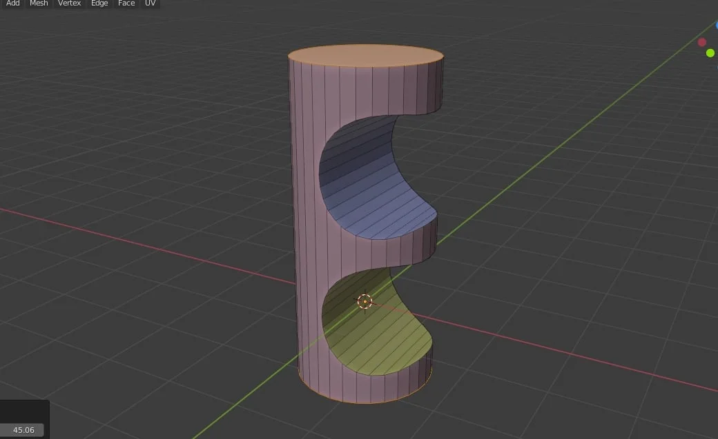 Curve Face Color is an add-on that groups faces and assigns random materials based on surface curvature, marked seams, or marked sharps. It uses an adjustable edge angle parameter to determine which faces belong to the same group, assigning a unique material to each distinct section. This is particularly useful for isolating faces generated by boolean operations or for quickly selecting specific curved surfaces using Blender's material selection tools. The tool is accessed via the right-click context menu while in Edit Mode.
