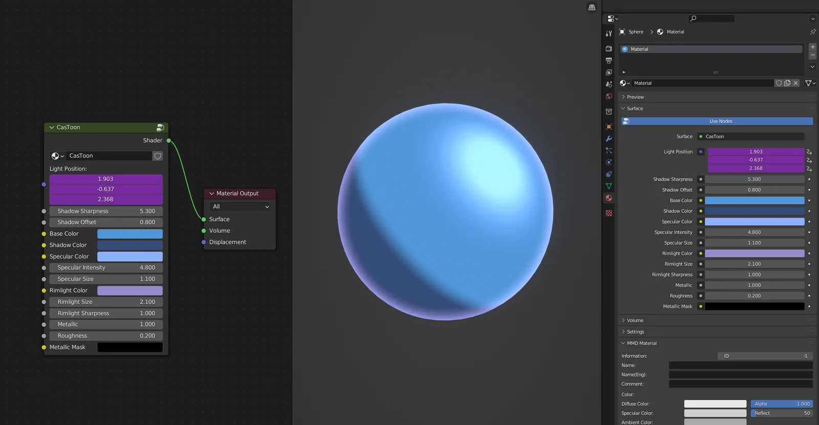 CasToon is a custom-lit toon shader node group for Blender that operates independently of the scene's standard lighting system. It is compatible with both EEVEE and Cycles. Users control the light direction manually through vector inputs or by linking a controller object via drivers, allowing for precise, localized lighting setups for stylized rendering.