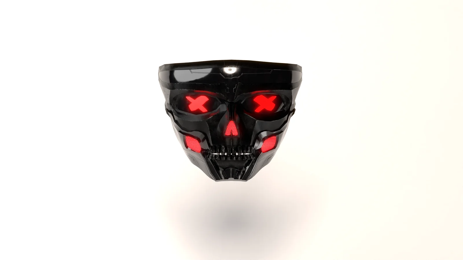 This is a 3D model of a cyberpunk-style face mask featuring a skull design. The asset consists of approximately 3,000 polygons and uses a single material. It includes PBR texture maps generated in Substance. The model does not contain bones or vertex groups and requires manual scaling and positioning to fit different character heads.