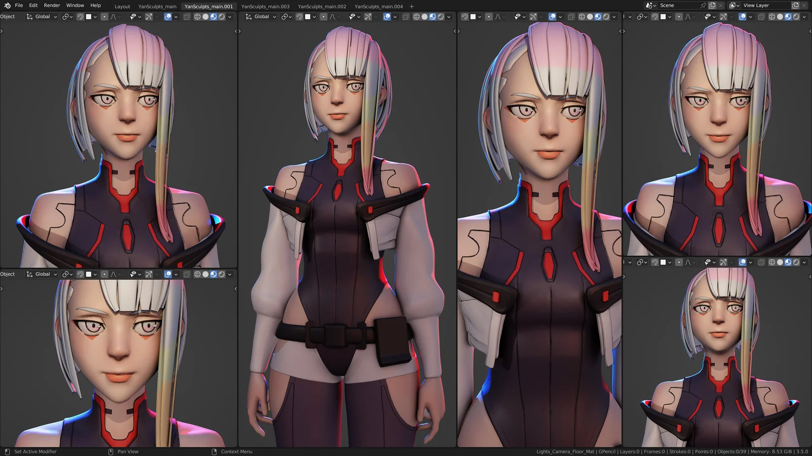 Watch the complete workflow for creating a stylized anime character in Blender. This package provides nearly ten hours of real-time, silent screen recording capturing the entire sculpting, modeling, and texturing process for Lucy from Cyberpunk: Edgerunners.