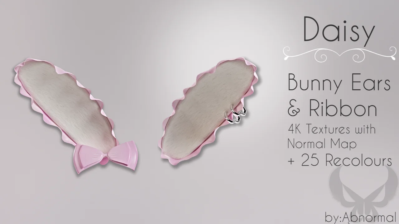 A 3D model of bunny ears accessorized with a ribbon, designed for use on characters or avatars. The asset is rigged with eight bones and includes pre-configured weight painting for procedural or manual animation.