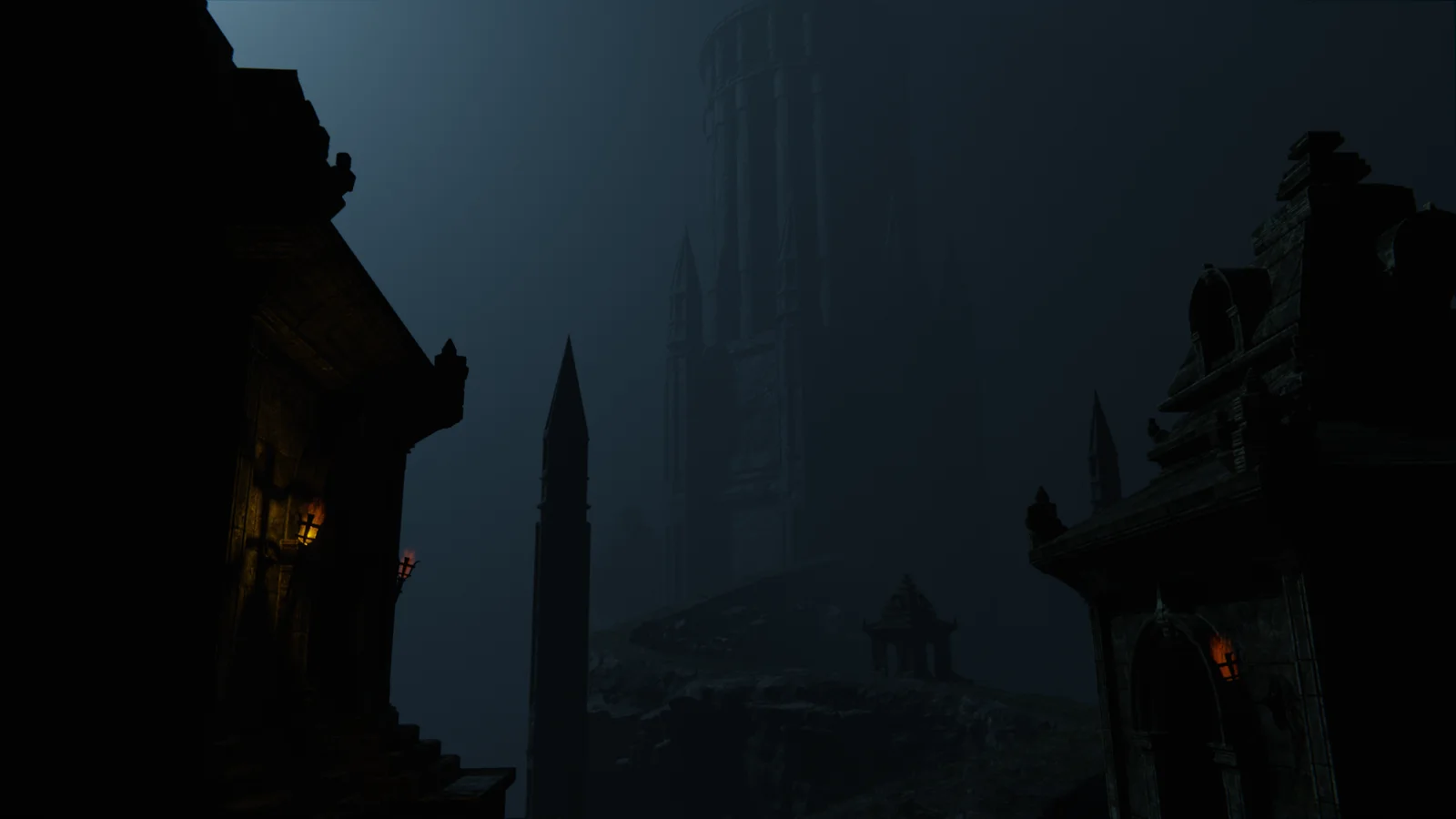 The file includes the camera composition, post-processing settings, final lighting and fog setups, custom-modeled castle ground pillars, node-based materials, and organized scene collections. External assets such as torches, side temples, arches, ground textures, additional props, and foliage from BlenderKit, Megascans, Botaniq Biomes, and Max Hay's Arches Pack are not included due to licensing restrictions and must be acquired separately to load the scene exactly as presented. This scene is structured for studying cinematic lighting, fantasy environment composition, and rendering workflows.