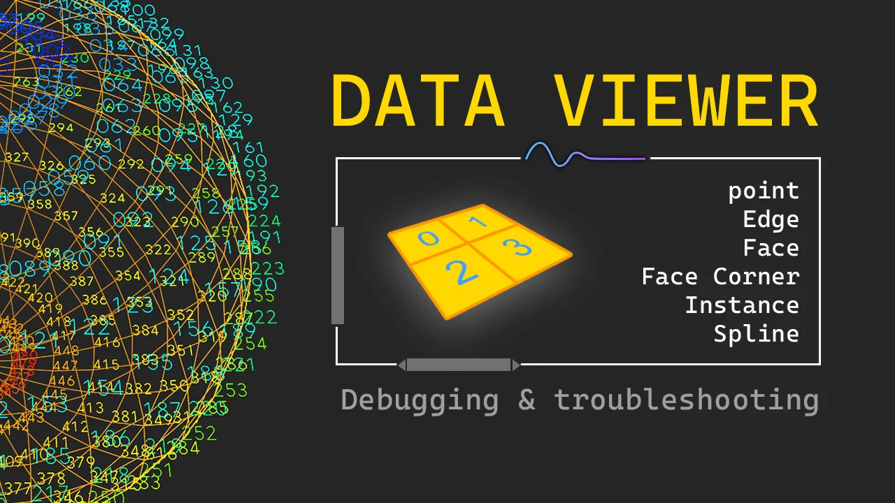 Data Viewer is a Geometry Nodes tool that visualizes attribute data directly within the 3D view, bypassing the need to constantly check the spreadsheet editor. Users can display values like vertex, edge, or face indices, as well as positions, rotations, and radii directly on the corresponding geometry.