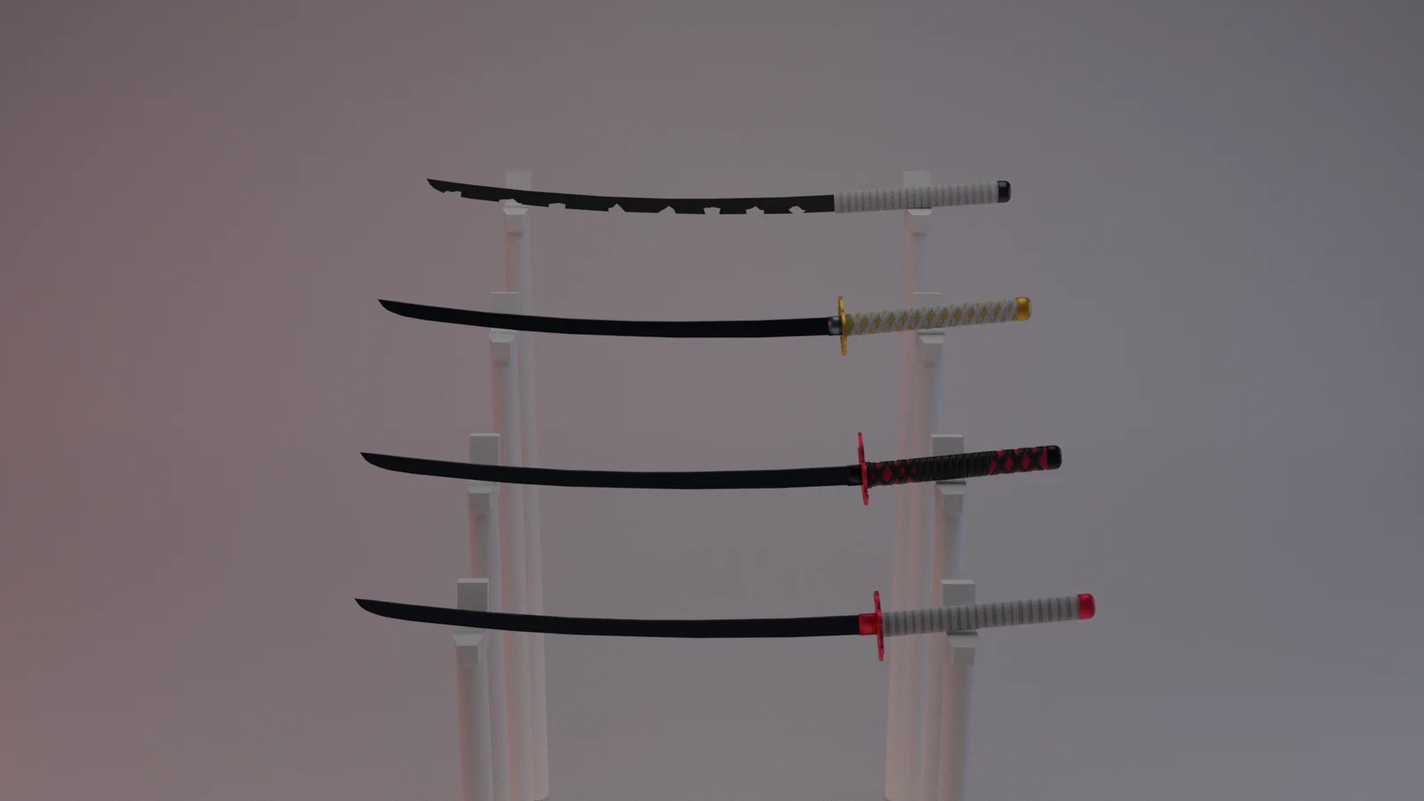 A collection of 3D sword models inspired by the anime and manga series Demon Slayer. The models are built from scratch and are provided in FBX format alongside 4K resolution texture maps, designed for integration into scenes or character avatars. Note that the designs are an original interpretation and not an exact replica of the source material.