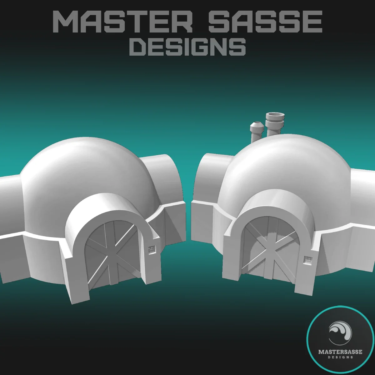 These two desert farm hut models are designed for FDM 3D printing and can be used in desert or sci-fi tabletop scenery. They act as ready-made set pieces, battlefield obstacles, or diorama backgrounds.