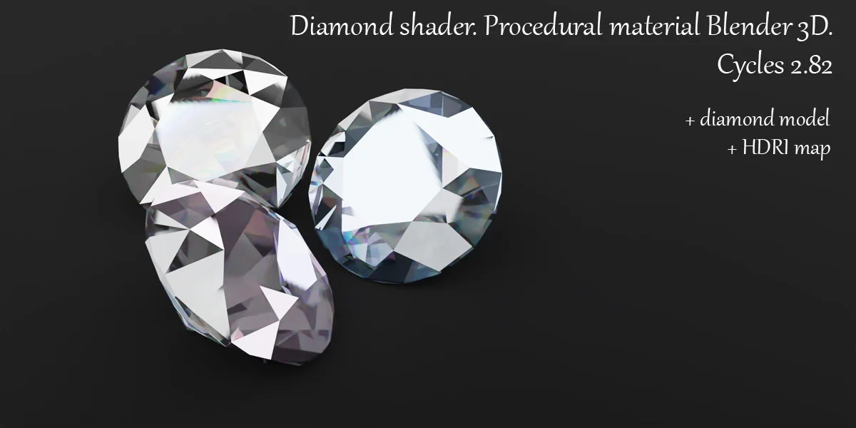 This asset provides a set of procedural diamond materials for Blender. The materials do not rely on UV mapping and offer customizable parameters through node adjustments, including hue, roughness, transmission, and absorption strength. The package also includes pre-made diamond geometry models, designed specifically for the Cycles render engine.