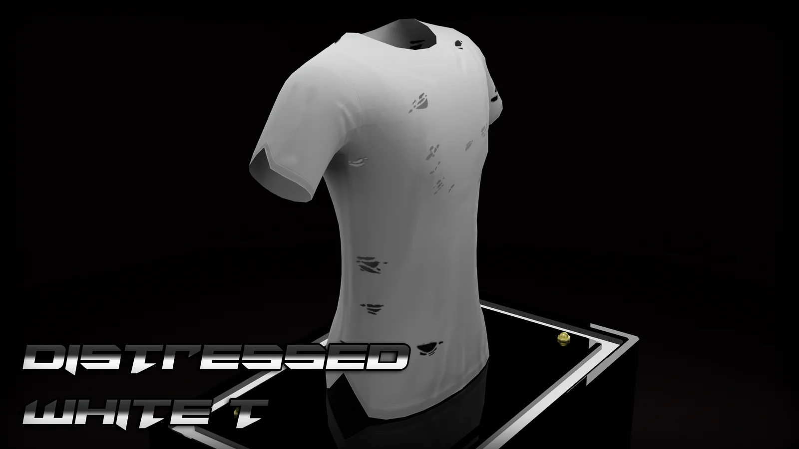 A 3D model of a distressed white t-shirt. The asset was created in Blender and textured in Substance Painter, providing both standard PBR textures and texture maps specifically configured for Poiyomi shader versions 7 and 8.