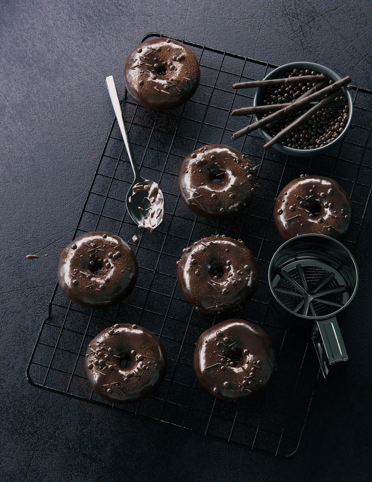 A complete, ready-to-use scene file featuring a 3D donut setup. The package contains the native .blend file and includes all associated 3D models, material textures, and the included HDRI environment used for lighting.