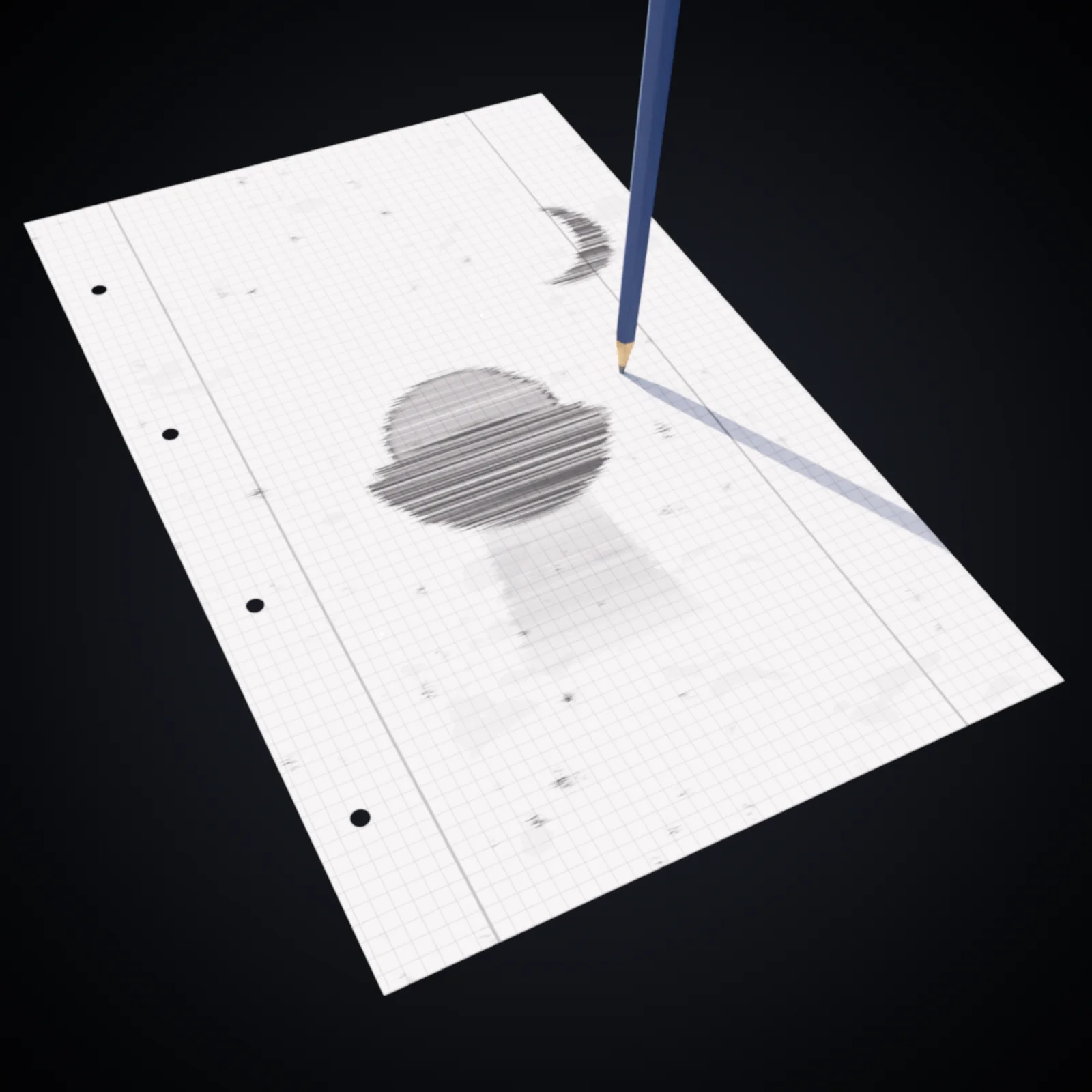 A fully procedural drawing material designed for the Cycles render engine. The shader utilizes vector displacement to simulate the physical interaction of pen on paper entirely through node setups.