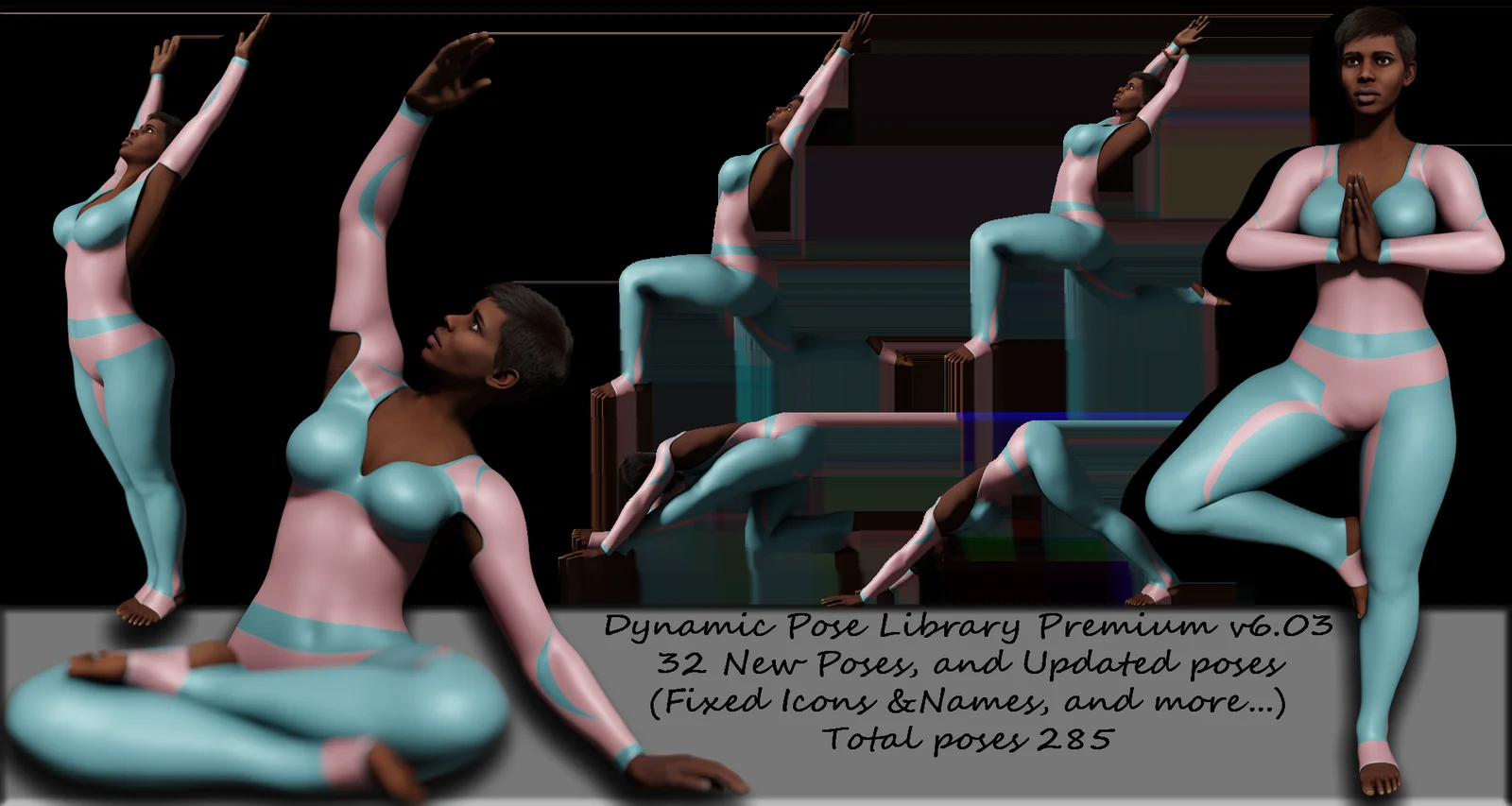 Dynamic Pose Library Free provides a collection of poses compatible with Blender's Asset Browser. The collection works with rigs generated by Blender's Rigify addon or the Human Generator addon. The current version includes 70 poses and 2 assets designed to accelerate character posing workflows within Blender's native asset management system.