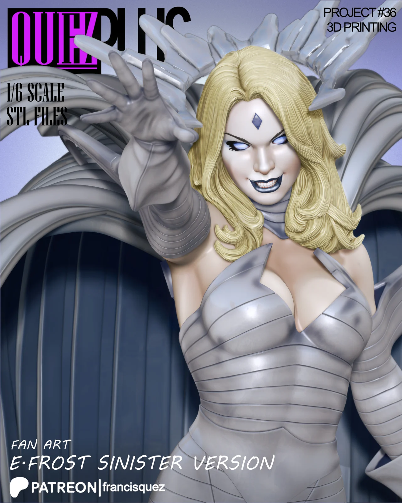 This product provides a set of digital character model pieces designed for 3D printing. At its default 1/6 scale, the assembled figure stands 349mm (13.7 inches) tall, though the dimensions can be adjusted in slicing software. The 3D geometry is supplied entirely in STL format and packaged within a compressed archive for physical production and miniature painting workflows.