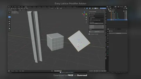 Easy Lattice Modifier provides an interface for generating and controlling lattice modifiers across multiple objects simultaneously. Users can generate lattices aligned to global coordinates, local object coordinates, or specific face normals. The tool includes controls for resolution, interpolation types, and padding to adjust the bounds around selected geometry. It also features a management panel to bulk apply or remove lattice modifiers from selected meshes, and allows for limiting deformation via vertex groups.