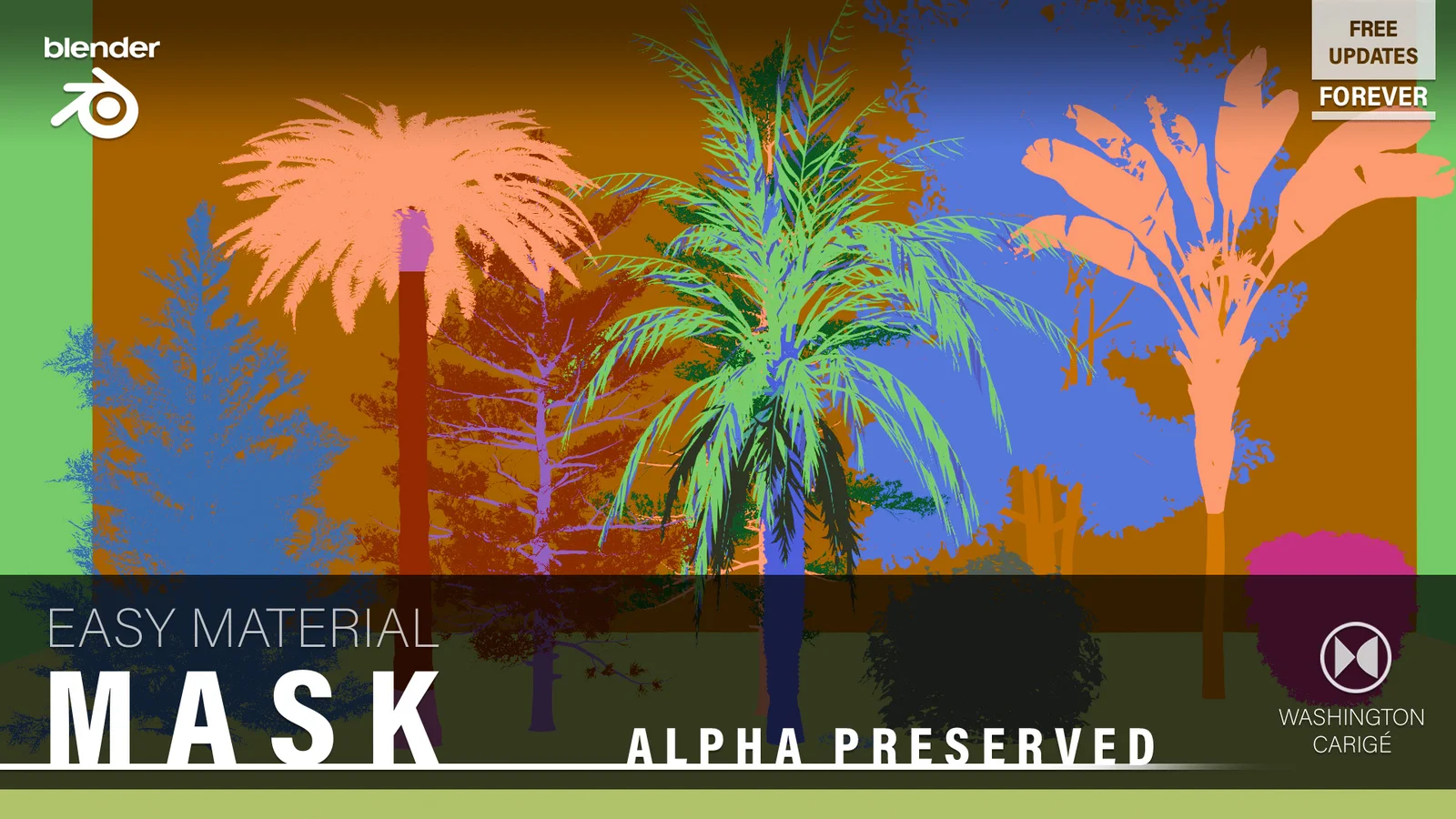 Easy Material Mask provides a straightforward method for generating flat render colors for individual materials while preserving alpha channels. The tool is designed to assist with post-processing and compositing workflows by creating distinct colored masks for different parts of a scene.