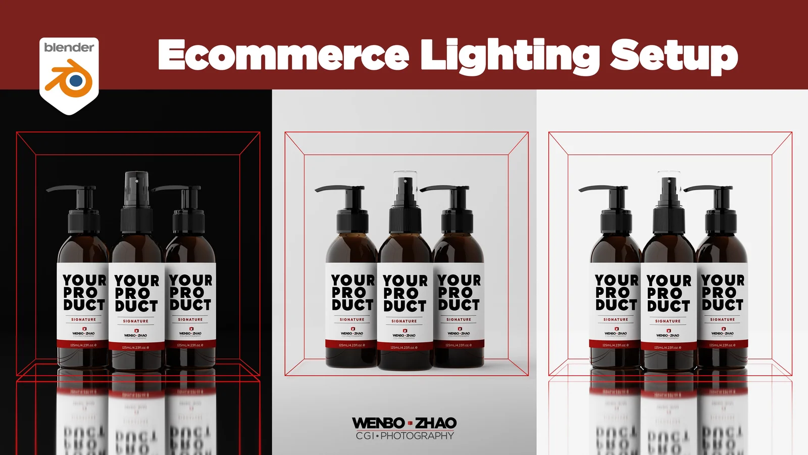 A pre-configured Blender scene designed specifically for e-commerce product rendering. The environment provides a ready-to-use studio lighting setup to help achieve consistent results across different product visualizations. The provided project file includes the lighting rig, base 3D models, and texture shaders, allowing users to import their own product models into the scene and render immediately.