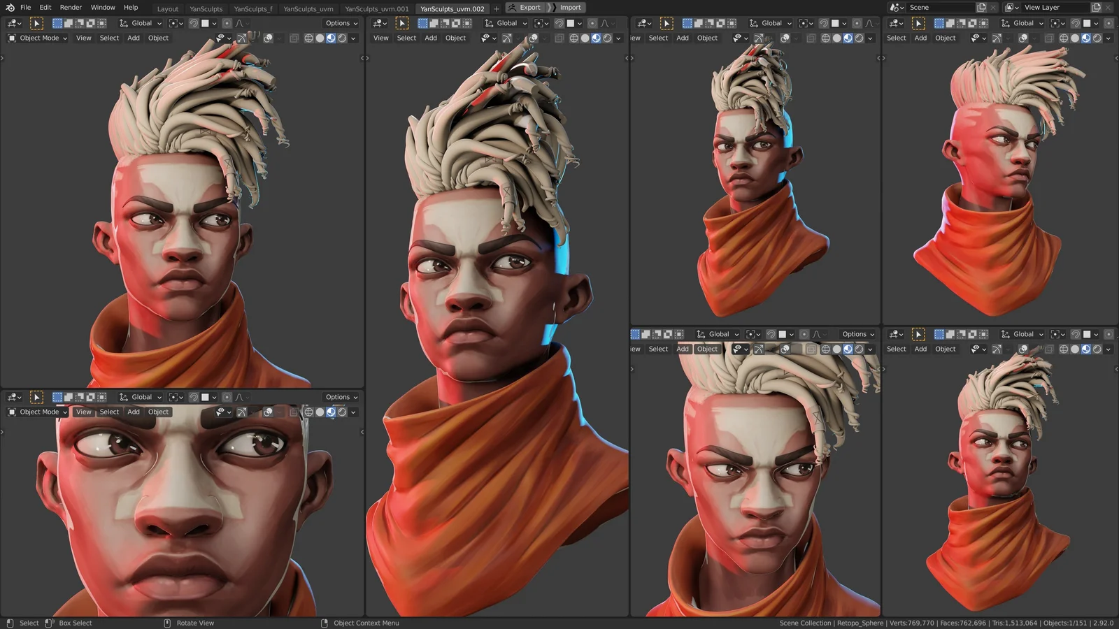 In addition to the video content, the package includes the final Blender project files complete with the character model, materials, and lighting setup. An FBX version of the model is also provided alongside high-resolution renders.