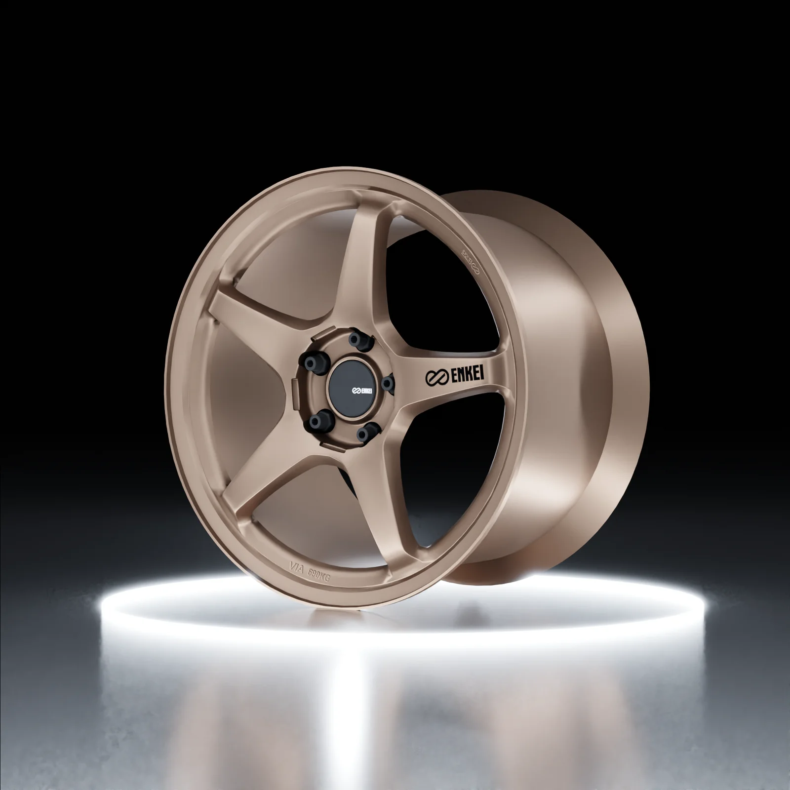 This is a 3D model of an Enkei TS5 car wheel. The geometry consists of 22,450 triangles. The asset includes a complete set of 2K (2048x2048) resolution textures in PNG format, consisting of diffuse, normal, roughness, ambient occlusion, and metallic material maps.