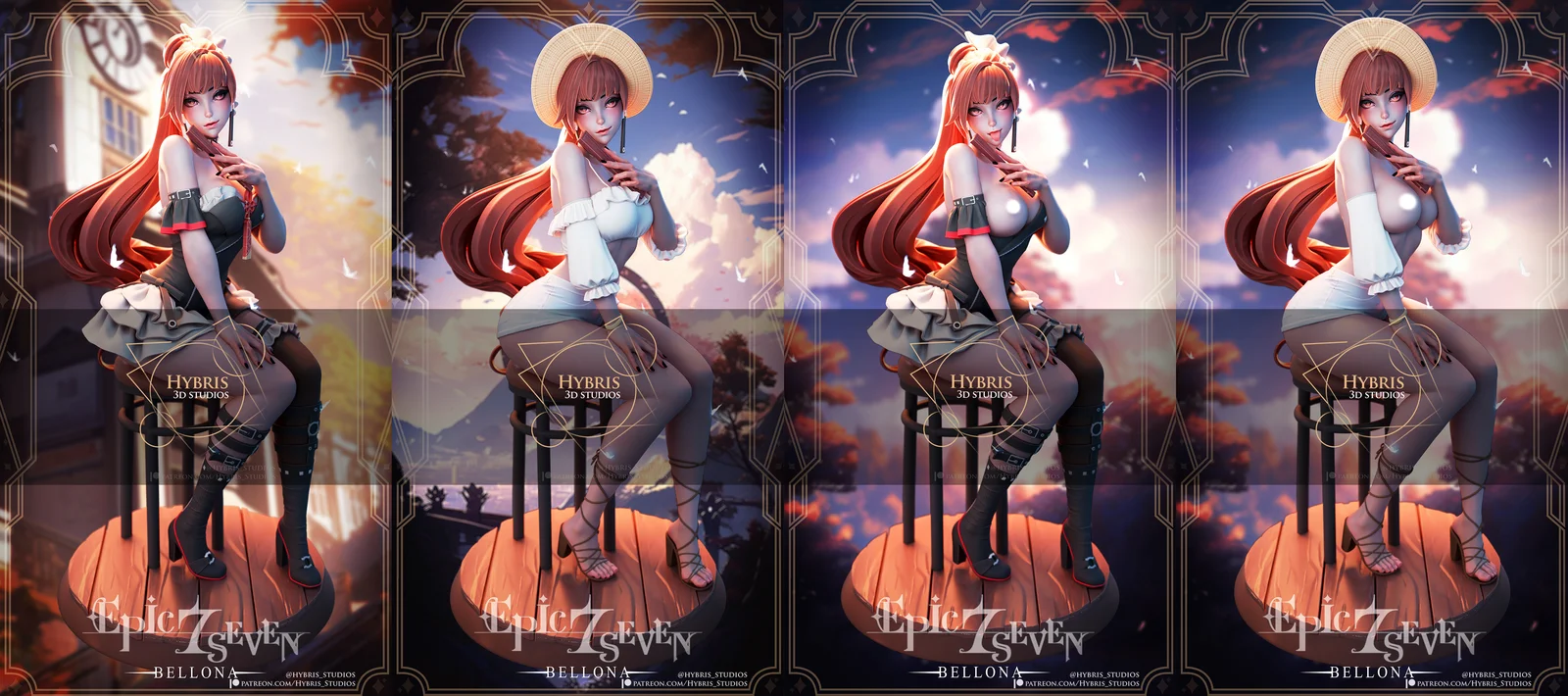 This product provides a 3D printable character model of Bellona from Epic Seven, optimized for resin printing at a 1:7 scale. The geometry includes lossless optimization and is seamlessly sliced and keyed for physical assembly. The package includes four display variations, featuring three interchangeable heads, two eye types, and a mounting base. Both pre-supported and unsupported print files are provided, alongside complete 2D render assets.