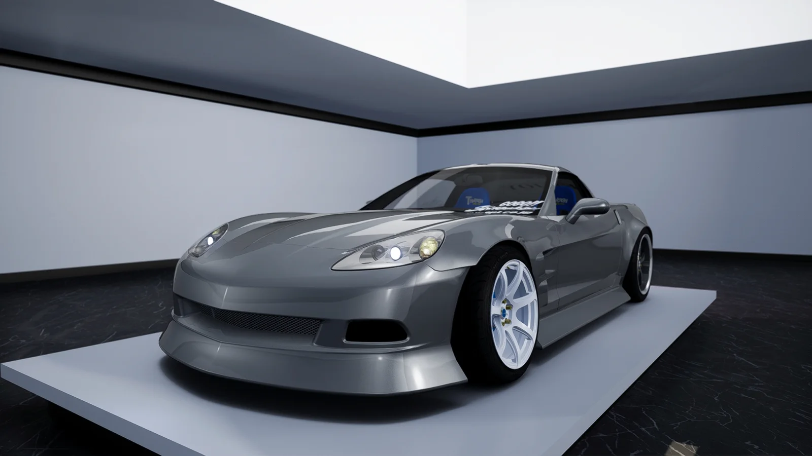 A set of 3D modeled BN-style bodykit components designed to fit the Some1 Corvette C6 base model. The kit includes front and rear fenders, a roof wing, side skirts, and bumpers intended for custom vehicle styling and automotive modifications.
