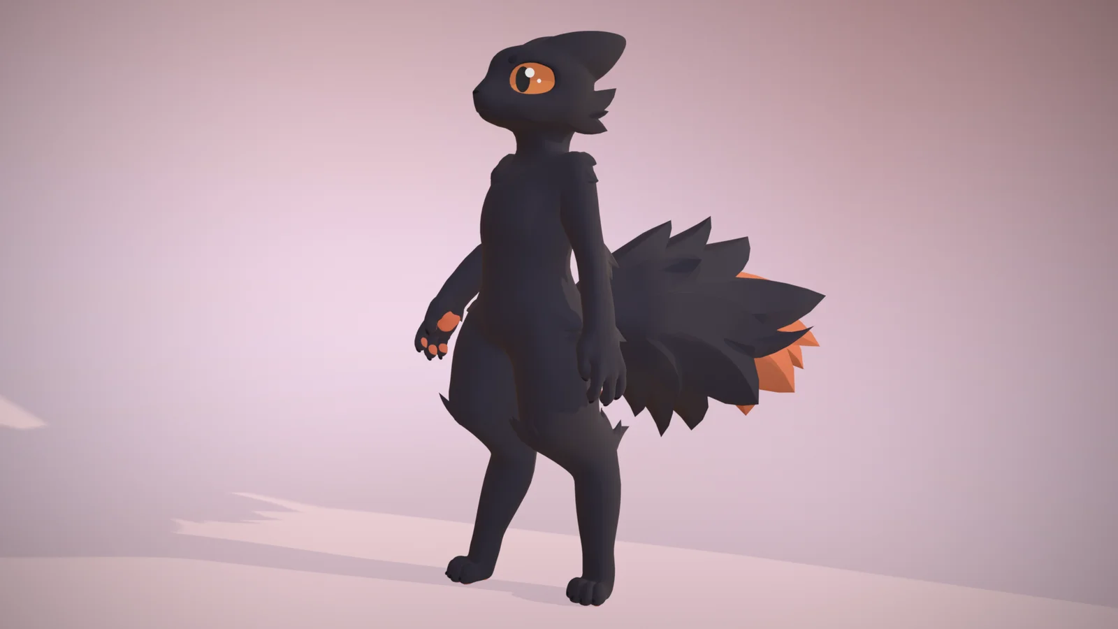 This product consists of a rigged 3D character model of the Expie hybrid creature from the game Casualties Unknown. The base model uses subdivision surfaces, while the fur and tail are provided as separate, non-subdivided meshes. The character is rigged using Blender's Rigify system and features a comprehensive set of shape keys to control the eyes, mouth, different body types, and to hide specific fur tufts when wearing outfits.