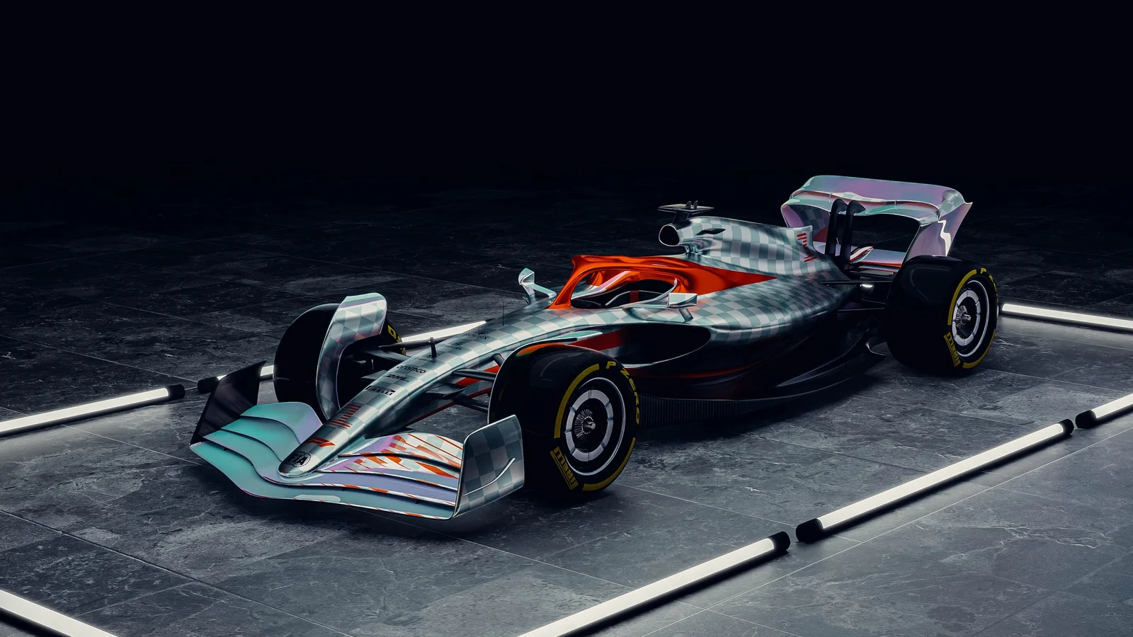 A 3D model of a Formula 1 concept car based on early 2022 vehicle designs. The package includes the car model with applied textures set within a simple studio environment, ready for quick rendering. It also provides a separate archive containing all necessary material maps to assist users in creating their own custom racing liveries.