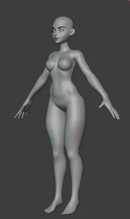 A fully rigged and textured female character model provided as a Blender project file. The asset includes the initial base mesh and the finalized retopologized model, complete with applied textures and a rigging setup ready for animation.