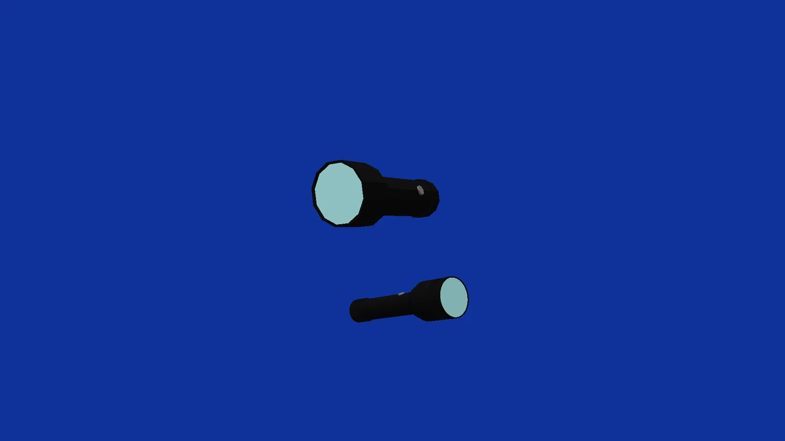 A collection of two 3D flashlight models designed for use in machinima projects. The pack includes a detailed model intended for use as a hero prop in close-up shots, alongside a simplified, low-poly version optimized for placement in the background of scenes.