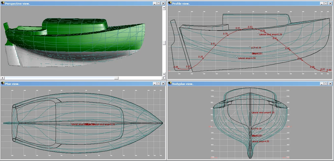 A 3D model of the Flicka 20 sailboat, modeled at dimensions of 6.43 meters in length, 2.44 meters in beam, and 1.04 meters in draft. The included Blender file contains multiple versions of the model, including one configured for display and another utilizing subdivision surfaces for further editing or rendering control.