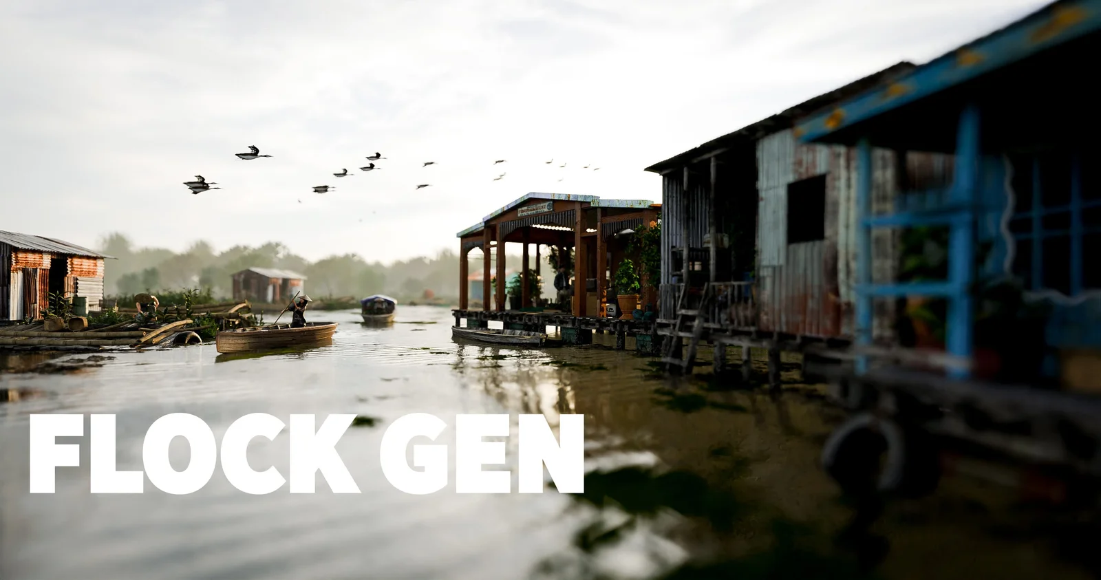 FlockGen provides a geometry node setup designed to generate flocks of birds or other flying elements within a scene. The system is driven by a curve object, allowing users to define the flight path by drawing a curve and assigning the node group to handle the distribution and movement. The package includes a pre-animated bird model alongside the core procedural setup.