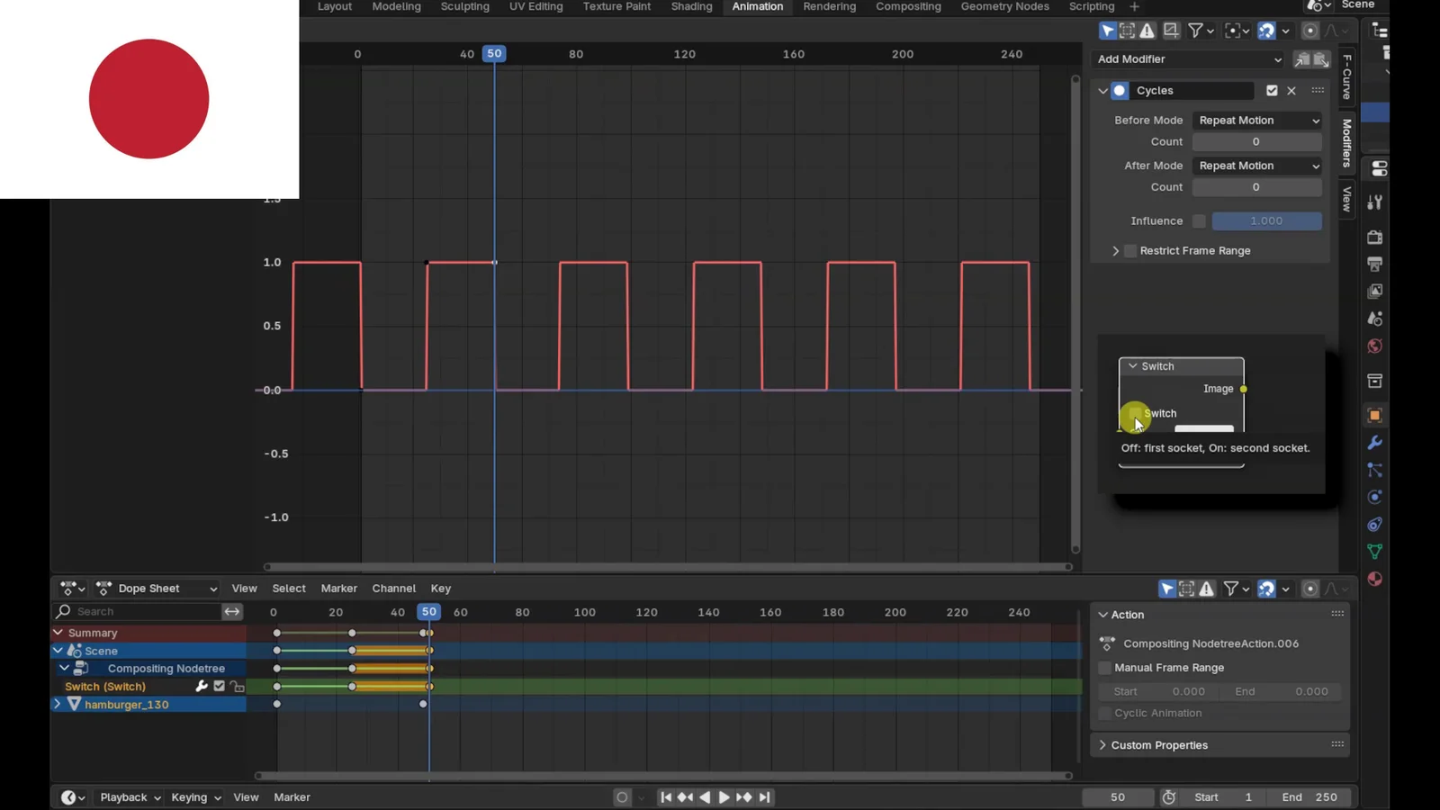 This tutorial explains how to animate the enabling and disabling of specific nodes or node groups in Blender's compositor. It covers the use of the Compositing Switch node in Blender 4.3. The provided material is a short PDF guide summarizing the techniques.