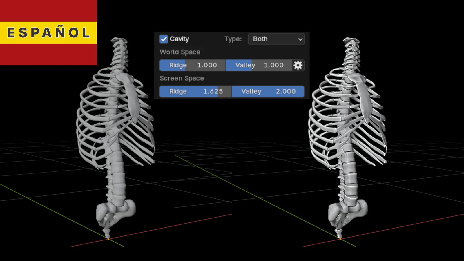 This PDF tutorial covers the fundamentals of the Blender interface, specifically focusing on how to highlight edges, ridges, and valleys of 3D models in the viewport. It explains how to enable and configure the Cavity option found in the Viewport Shading menu when using Solid view mode. The guide is based on Blender 4.3 but applies to general viewport navigation. Note that the tutorial content is provided in Spanish.