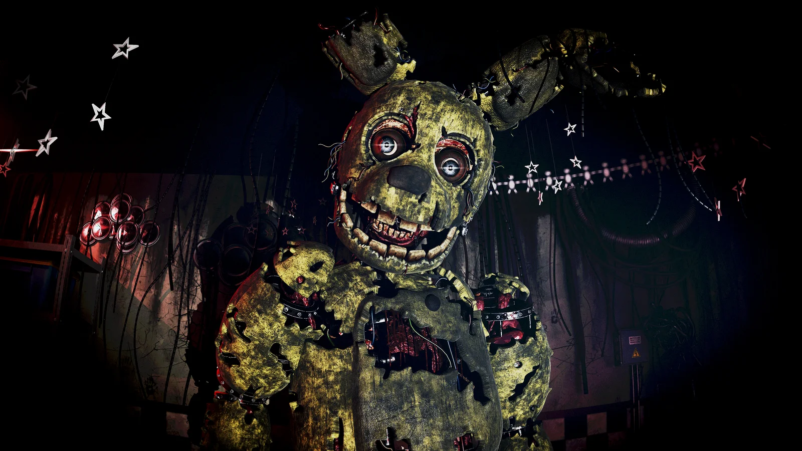 This bundle provides a collection of 3D models based on Five Nights at Freddy's 3, compatible with Blender 4.0 and newer. The package includes a complete FNaF 3 map alongside multiple character iterations, featuring SpringBonnie V2 and two versions of the SpringTrap AR Fix. The character models incorporate specific interior anatomical details, including a head corpse, lungs, heart, and bones.