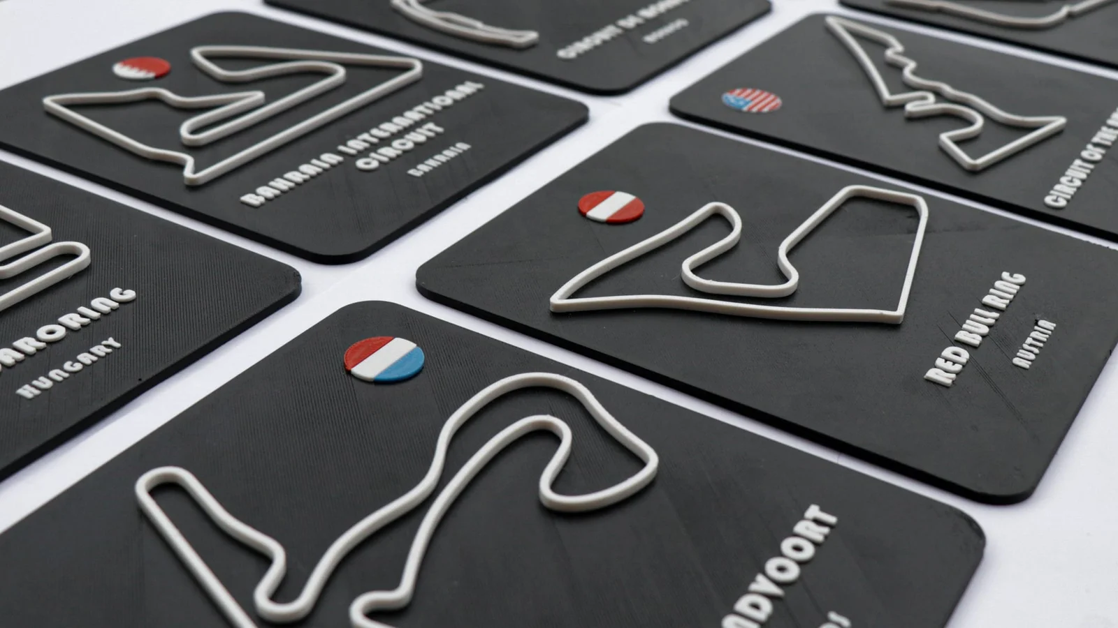 This is a collection of 24 3D-printable Formula 1 circuit models designed for wall or desk display. The package includes 96 unique designs, featuring four variations for each of the 24 circuits, representing tracks like Albert Park, Silverstone, Monaco, and Yas Marina.