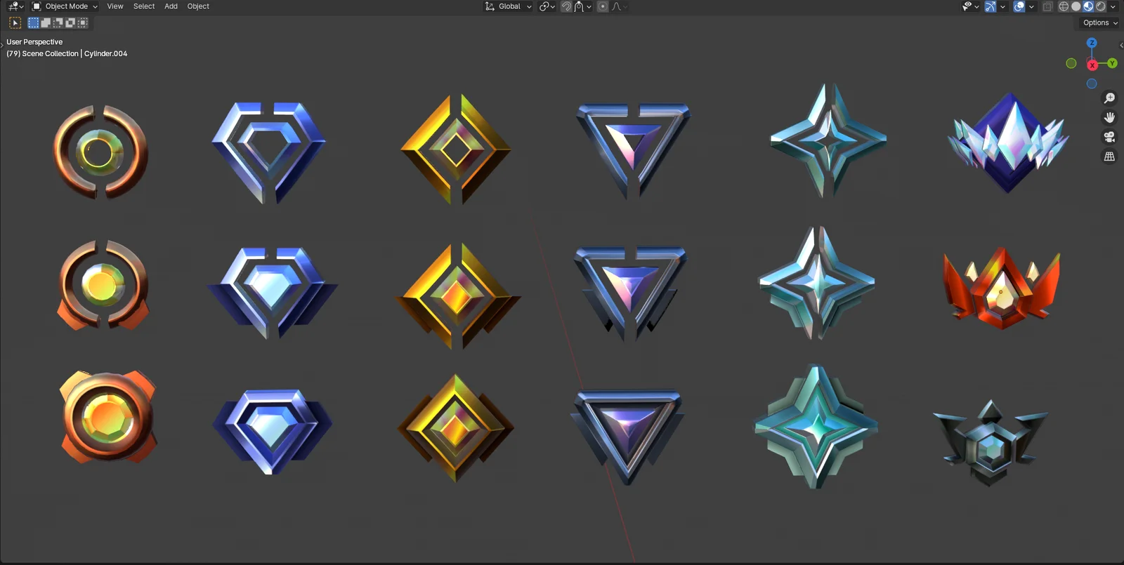 This collection provides 18 3D models representing the competitive rank badges from Fortnite, including the unranked tier. The models are optimized for real-time engines, sharing a single unified texture map with a combined vertex count of approximately 7,000 across all meshes. The assets are provided in standard formats suitable for use in Blender, Unreal Engine, and UEFN projects.