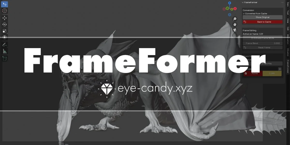 FrameFormer is a Blender add-on that enables sculpting and editing on imported Alembic mesh sequences. It works by converting the Mesh Sequence Cache modifier data into a non-destructive shape key system, allowing users to make adjustments directly within Blender without needing to re-export from the source software. Users can perform frame-specific sculpting to fix glitches or add temporary details like cloth wrinkles, as well as global sculpting for persistent changes across the entire animation. The tool supports multi-object editing, allowing sculpt changes to propagate across multiple selected objects simultaneously. It includes options to convert custom frame ranges and a toggle to instantly revert to the original Alembic cache data.