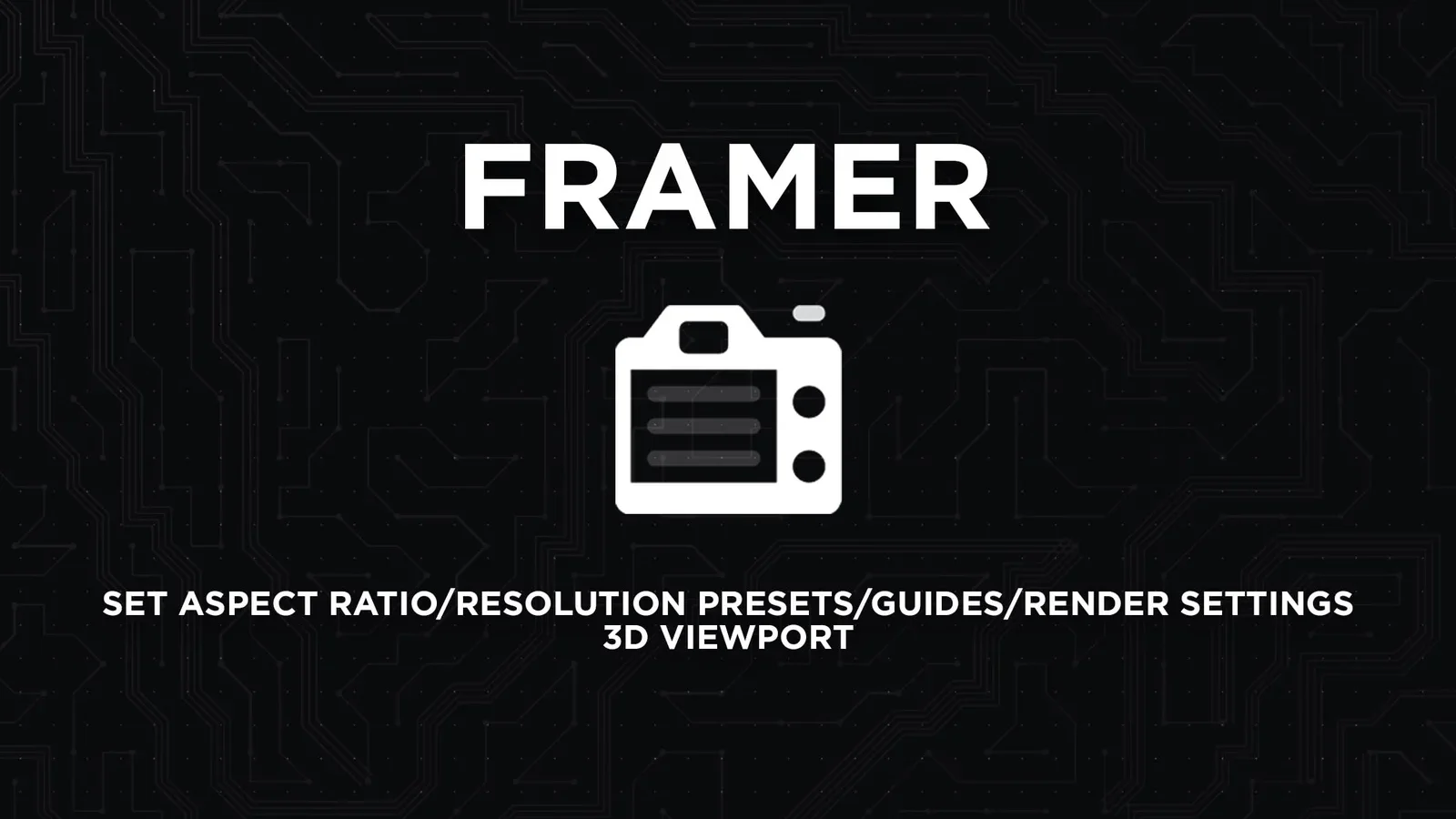 Framer is a Blender add-on that assists with camera framing and render configuration. It allows users to quickly set up resolutions, orientations, and output formats from a dedicated tab in the 3D viewport. The tool introduces visual aspect-ratio guides to the viewport, including rule of thirds, diagonals, safe frames, and center marks, all of which support custom colors.