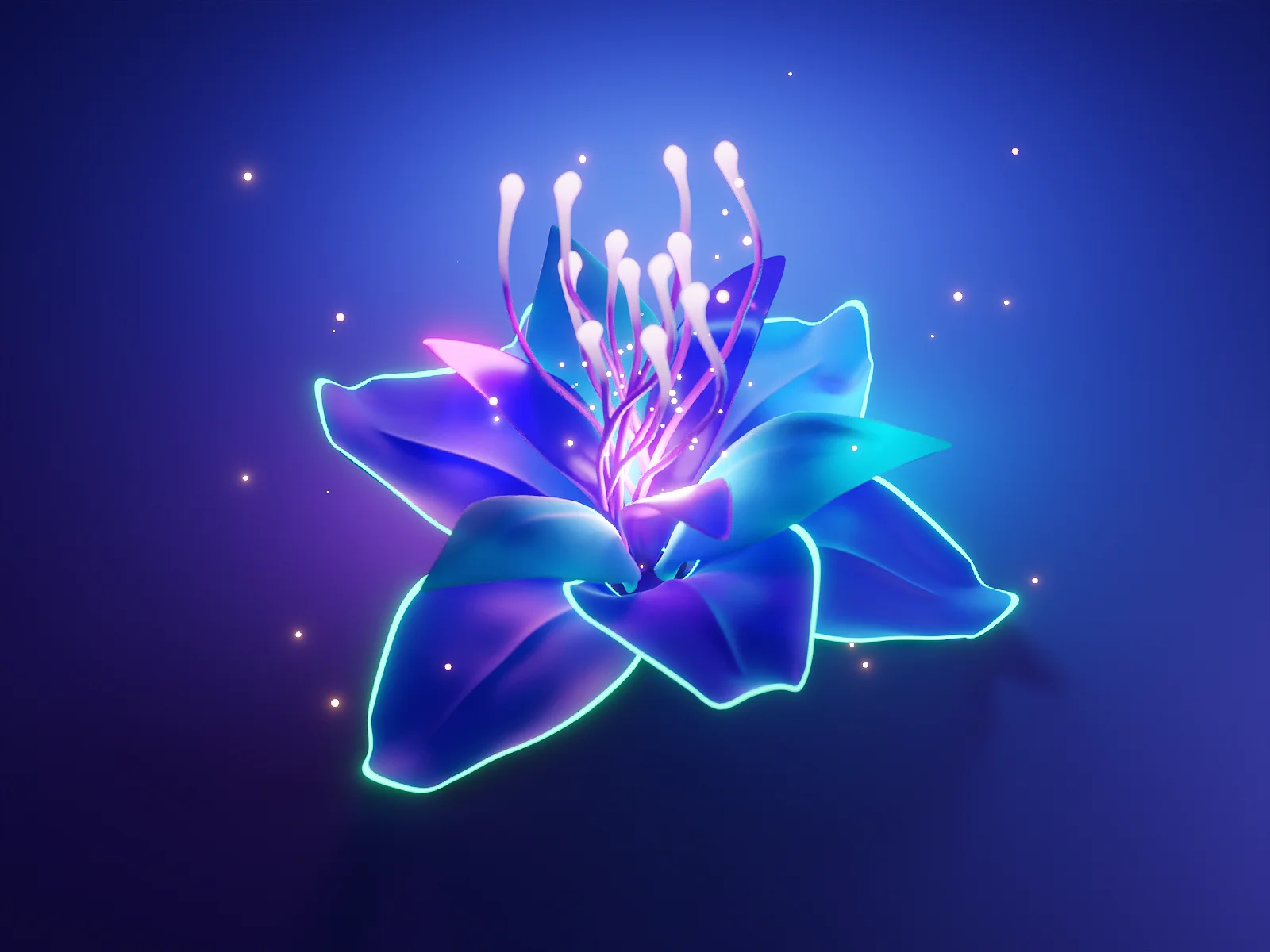 A complete 3D glowing flower scene created in Blender. This file serves as the final result for a corresponding YouTube tutorial by Polygon Runway, allowing users to explore the setup and techniques used.
